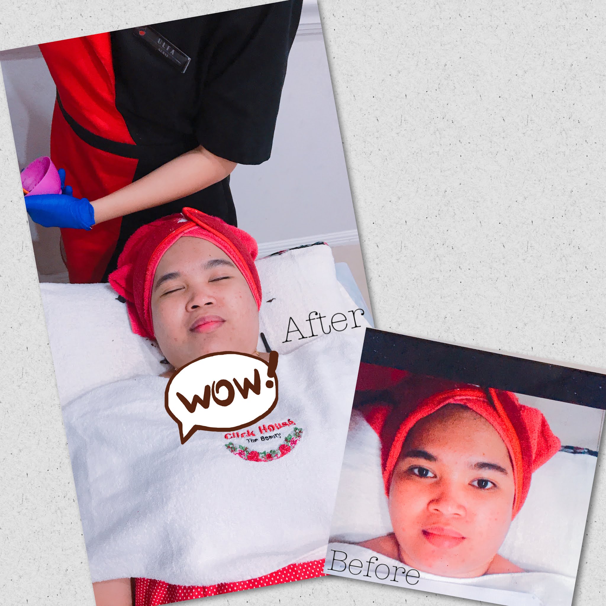 Oiya Tebakan aku kenapa nama kliniknya adalah "click" house, karena pas dilakukan treatment utama yaitu penyinaran. Setiap kali alatnya akan berbunyi seperti "klik" disertai dengan kilatan cahaya. Coba aja tonton video aku pas sedang treatment ini. Tapi ini hanya tebakan yhaa, gak tau betul atau tidak, hehe..
